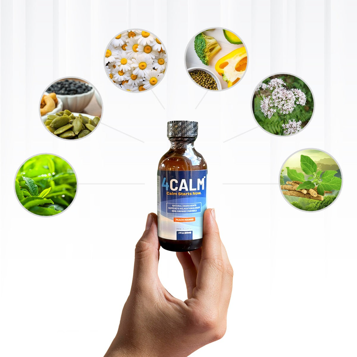 4Calm is a liquid supplement made with trusted, science-backed ingredients that support relaxation, focus, and balance through life’s busy moments. Our gentle, non-drowsy formula helps you feel centered—naturally.